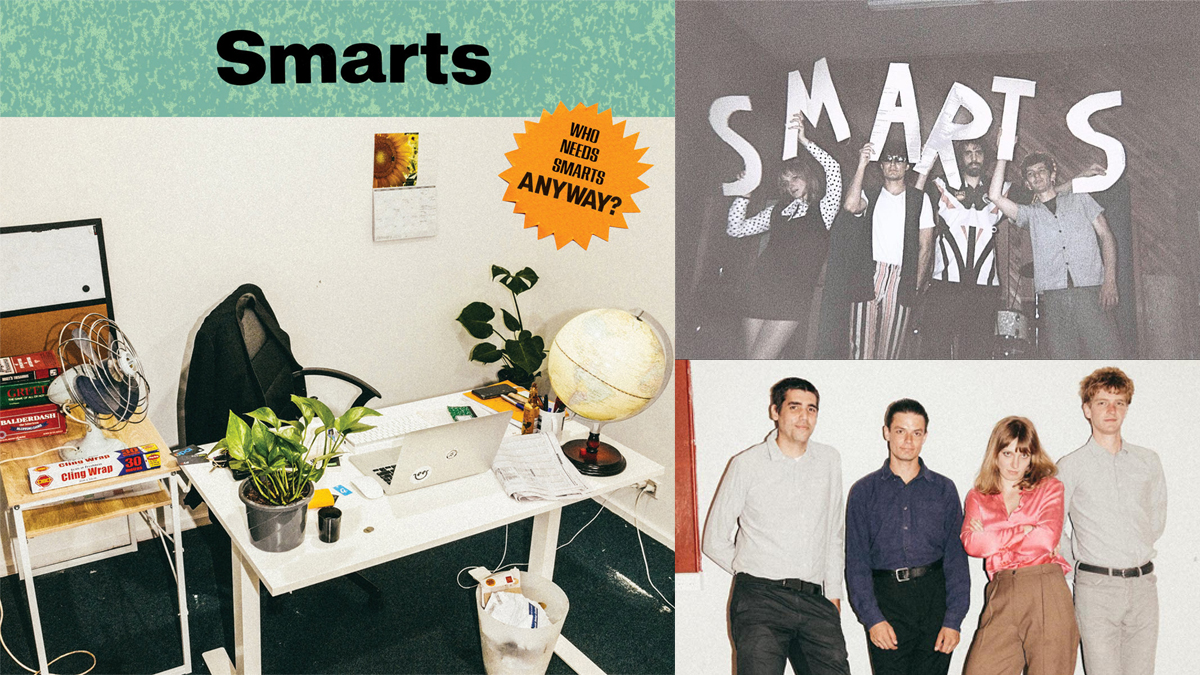 Gli Smarts vengono da down-unger, dall’Australia, come capita spesso con le band del caro vecchio sano rock oscillatesta. Sono partiti come un duo, ossia il chitarrista Bill Gardner (ex Ausmuteants) e il bassista Mitch Campleman, entrambi già nei Living Eyes. Come duo hanno fatto una demo che possiamo immaginarci tanto acerba quanto diretta e viscerale, ma poco importa. Diventano subito un quartetto con gli innesti del batterista Jake Robertson (Heroplant, School Damage) e del synth di Sally Buckley. Diventano finalmente quel che sono con l’aggiunta di Stella Rennex, chitarrista nei Parnsip, sassofonista negli Smarts. Insieme ti fulminano con 13 brevi pezzi racchiusi in 22 minuti di puro rock oscillatesta, frenetico, fresco e divertente.